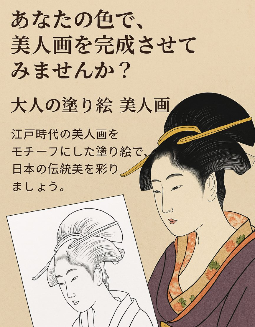 あなた自身の手で歌麿風の美人画を彩る、大人の塗り絵をご用意しました。